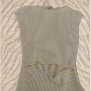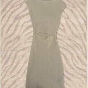 Wilfred by Aritzia ribbed cream mini dress with waist cutout detail. Minimal, chic, and so flattering.