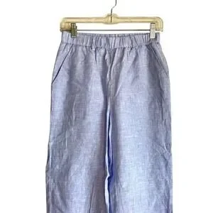 Quince European Linen Cropped Pants XS Blue Coastal Beachy Capsule