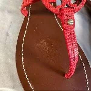 Tory Burch Mini Miller Flat Thong Micro Tejus Print Leather Sandals. Size 8. The left sandal has a worn area from where a sticker was placed there, still in excellent condition. Comes with large dust bag.