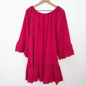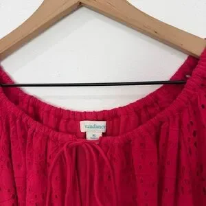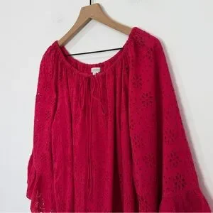 Sundance Moray Eyelet Bell Ruffle Sleeves Lipstick Red Coverup Tunic Dress XL