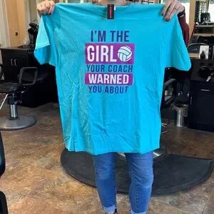 Fun volleyball graphics on soft tees. Comfortable and stylish.