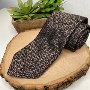 Ike Behar New York Mens Silk Tie Brown Blue Geometric Floral Hand Tailored USA