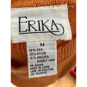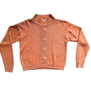 Vintage Silk Angora Blend Mock Neck Sweater Orange Floral Rosettes Size M