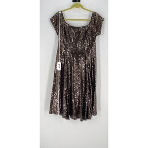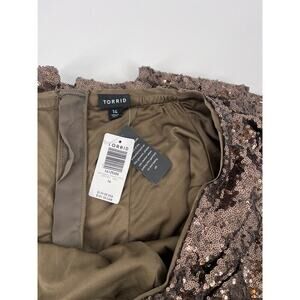 New with $140 tags Torrid Gown. Brown colored sequins sewn on to of one another making a completely sparkly body of the dress. Fitted top with a flared out bottom. Well made back zipper with a clasping closure. No flaws, in perfect condition. Ready to be worn to a holiday party!