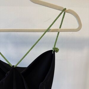 Elegant black dress featuring green straps. Perfect for any occasion.