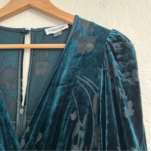 Calvin Klein Turquoise Floral Velour Sheer Midi Dress, Size 10P