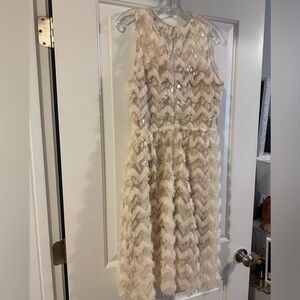 Elegant cream dress with textured design. Sleeveless and chic. Perfect for any occasion. Super cute. New with tags