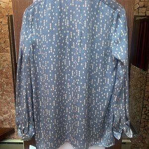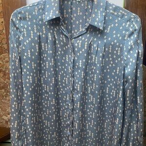 Equipment Blue and White Patterned Casual Shirt all silk