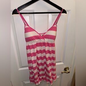 Chic and comfortable, this pink and white striped dress is perfect for any casual outing. Enjoy the soft fabric and flattering fit.