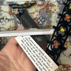 Uniquely crafted mixed prints include paisley bottom / geometric/ floral/ bleach die
