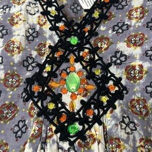 KC CHAUDRY COTTON HAND DYED BOHEMIAN JEWEL PAISLEY PRINT MINI DRESS SMALL Sample