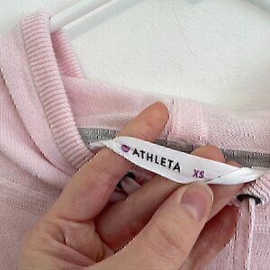 ATHLETA Rally Hoodie Sweater Light Baby Pink Gray Stripe Knit Hooded Sweatshirt