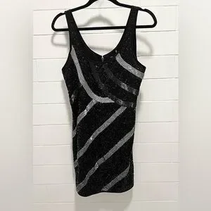 Guess Black and Silver Sequin Mini Party Dress