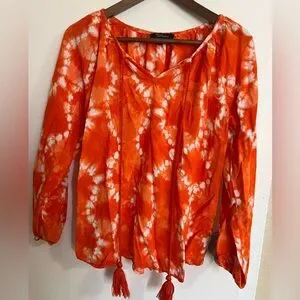 RD & Koko by Anthropology Geometric Tie-Dye Blouse Orange SzM Y2K BohoChic