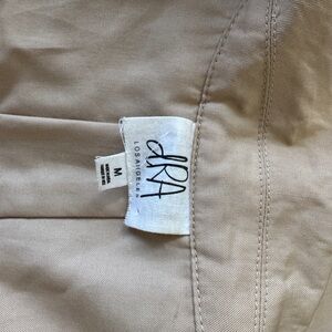 Stylish pleated tan trench coat. Double-breasted design. Classic and versatile. DRA Los Angeles