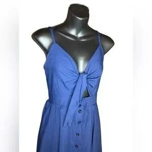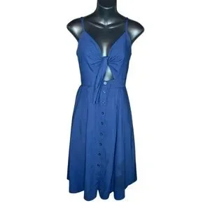 Ecowish Womens Dresses Summer Tie Front V-Neck Spaghetti Strap Button Down A-Line Backless Swing Midi Dress navy Blue-M cotton mix preloved in excellent condition.