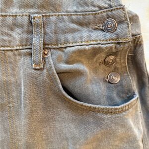We the Free Good Luck Barrel Overalls. Free People denim overalls. Light brown/ chocolate mousse color. Good condition with tiny snag on leg- see detail picture. Size S