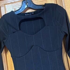 PrettyLittleThing PLT Black Cutout Bodycon Pinstripe Midi Dress Size 6 EUC