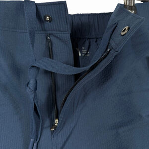 New with tags. VRST Mens 6" Navy Blue seersucker mens shorts, made for in or out of the water, button, zipper, drawstring closure, wrinkle resistant, comfort stretch, moisture wicking, zipper pocket, UV Protect 50, Breathable. Size Medium