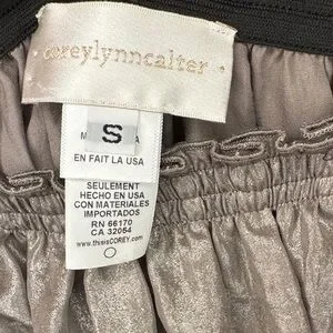Corey Lynn Calter Shiny Stretch Metallic Silver Pewter A-Line Skirt w pockets- S