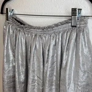 Elegant Anthropologie silver A-line mini skirt with a metallic sheen. Street waist and pockets on sides. Perfect for adding glamour to any outfit. See pics for details, NWOT. Flat lay measurements are in pictures.