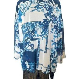 Chico’s TRAVELERS COLLECTION Patchwork Fringe Duster