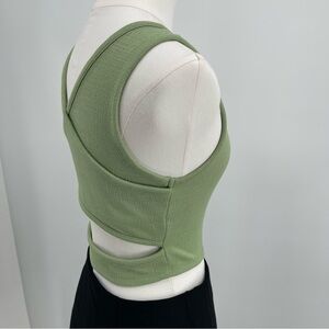 Roxy Good Keepsake Green Crop Top Criss Cross Back Sporty Chic Surfer Athleisure
