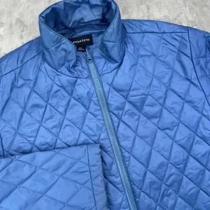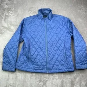 Lands End Quilted Full Zip Jacket Womens Large Blue Thermolite Puffer