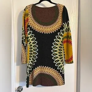Aryeh | By Anthropologie | Brown and Yellow Patterned Fabric Dress | Size Medium