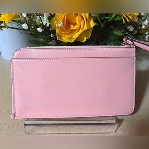 Kate Spade Lucy Medium L-Shaped Blush Pink Patent Wristlet Clutch in Tea Rose