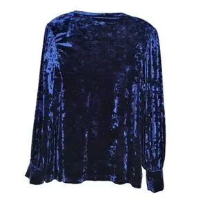 Modcloth blue crushed velvet top. Pullover style with slightly ballooned sleeves that end in a cuff. Stretchy fabric is 93% polyester/7% Spandex. In excellent condition with no holes, tears, or stains.