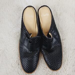 Amalfi by Rangoni Black Woven Leather Heeled Mules - 9 Made in Italy Block Heel