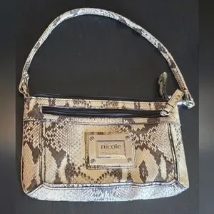 Elevate your style with the Nicole Lee Tan Snake Print Women's Bag. This chic accessory features a striking snake print design, perfect for any occasion. Carry your essentials in style and make a statement wherever you go.