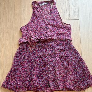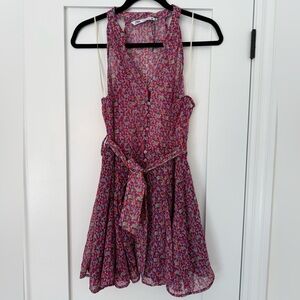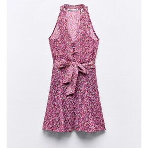 ZARA Floral Tie Waist Mini Dress Pink Multicolor Romantic