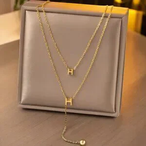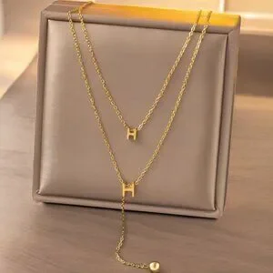 Elevate your look with this elegant double-layer necklace, featuring a sleek H pendant design and adjustable chain. A timeless accessory for refined style.