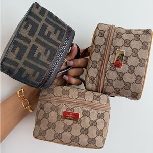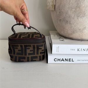 Stylish Fendi toiletry bag with iconic monogram. Compact and elegant design. Ideal for travel. Has peeling on the inside please see picture for more detail.