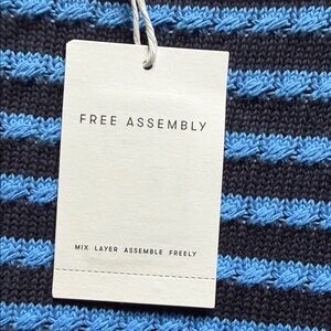 Discover the chic style of the Free Assembly Women's Sweater. This blue and black striped crew neck is perfect for adding a pop of color to your outfit. Ideal for casual outings or cozy days at home.