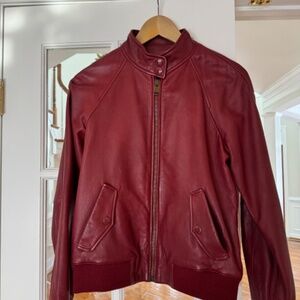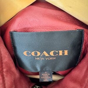 Authentic Coach Women's Red Leather Bomber Jacket, Size Small (S), Red Leather
