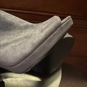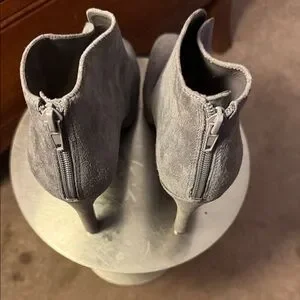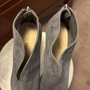 NWOT NINE WEST chic tariano gray suede peep-toe ankle boots, with 4 1/2 inch-heels w/1-inch platform and back zipper closure. Perfect for adding a touch of sophistication to any outfit.