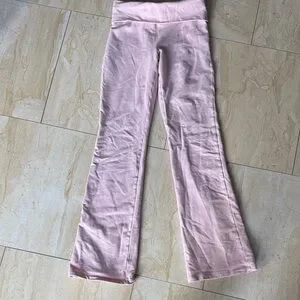 Soft pink lounge pants by Sunday Best. Ideal for relaxation or casual outings. Low waisted fold over flair leg.