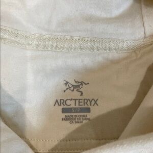 Stylish Arc'teryx hoodie. Soft cream color. Comfortable fit. Perfect for casual wear.