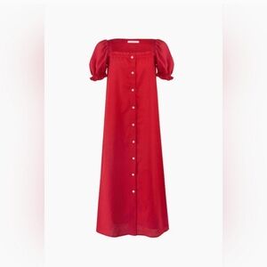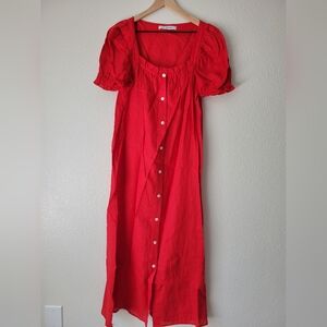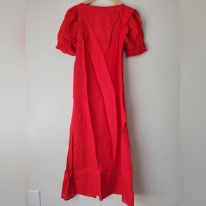 Sleeper red 100% linen brigitte midi dress, small