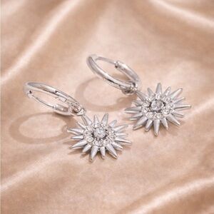 Sunburst Stainless Silver Waterproof Hoop Earrings