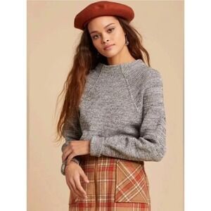 NWT Free People Too Good Gray Pullover Mockneck Knit Sweater Womens XL X Large