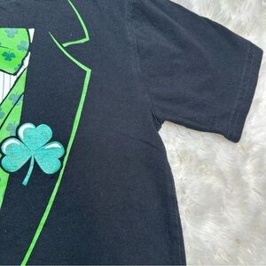 This eye-catching tee showcases a playful St. Patrick’s Day tuxedo design with a vibrant green vest and a classic black bow tie. Perfect for adding a touch of fun to your wardrobe. St. Patrick’s Day T-shirt in a size 5. Unknown brand Black in colour with fun St. Patrick’s Day tuxedo design in green and white. Comfortable and casual 100% cotton In great shape. No stains or flaws.