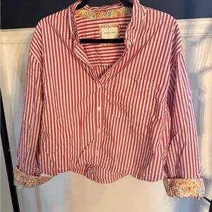 American Eagle 100% cotton Striped Cropped Button-Up Women's Top