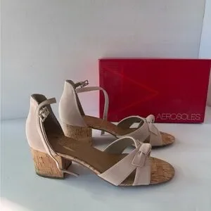 Aerosoles faux pink suede sandals with a stylish bow accent. Comfortable block cork heel. Perfect for any occasion. New never used.