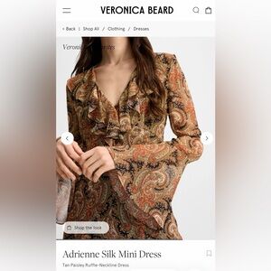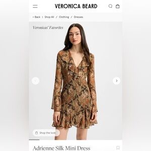 Elevate your wardrobe with this chic Veronica Beard mini dress with paisley design. Features a V-neck with ruffles and bell sleeves. Equally stunning paired with flats, heels or your favorite boots. Retails for $698!