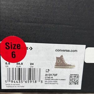 New in box. Converse Stylish lavender high-tops with star patterns.
