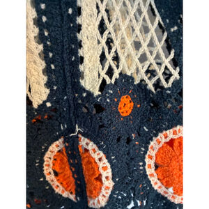 POL ONE blue, orange and cream crocheted tank top. Has triangle cuts on the hem. NWT